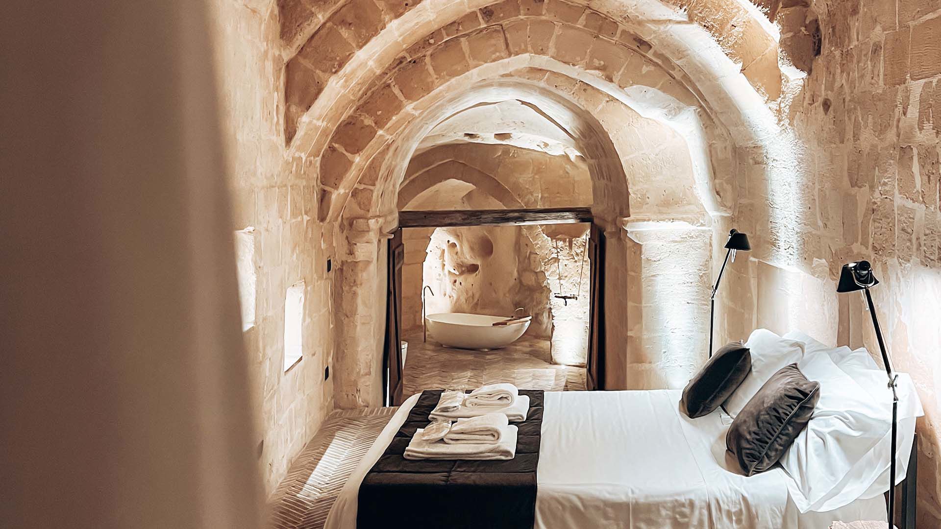 Il Palazzotto | Residence & Winery contains within it ten exclusive residences, carved out of the typical stone to recall the ancient atmospheres and suggestions of the Sassi of Matera.